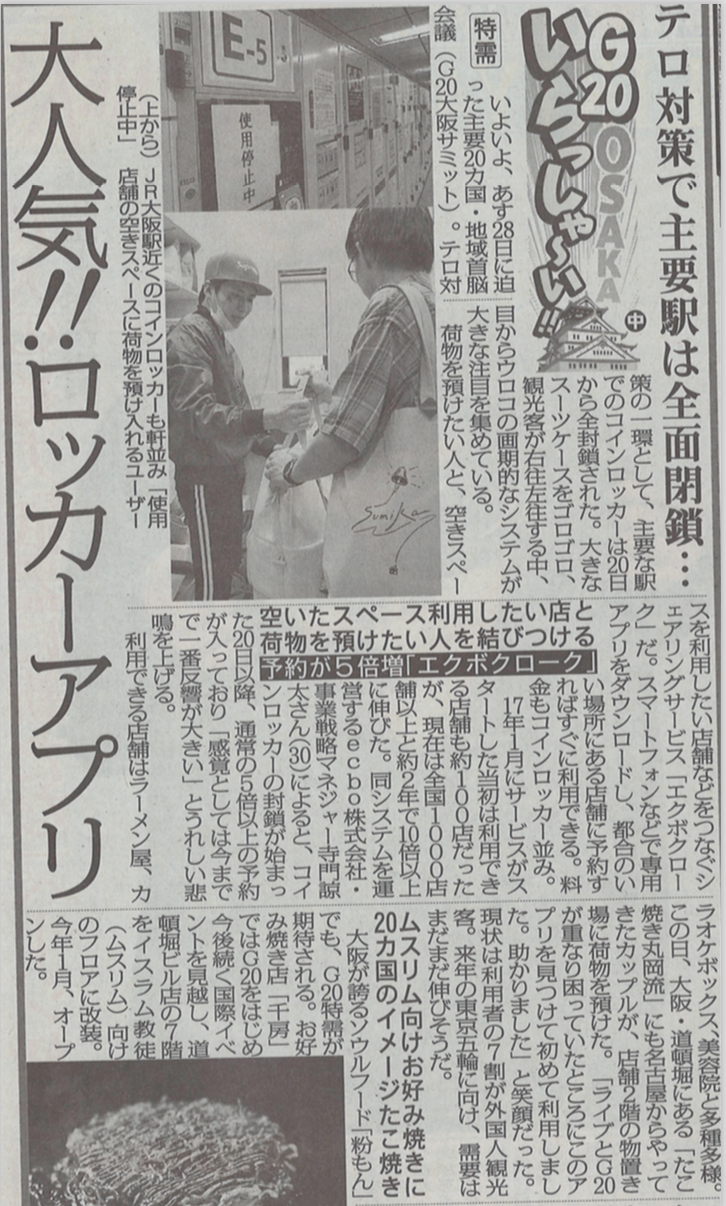 2019年6月27日(木)発行のスポーツニッポン 大阪版にてecbo cloakが掲載されました。